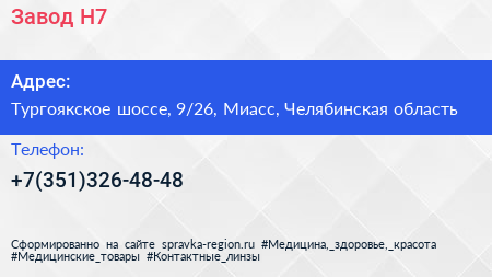 Завод «Н7» по адресу Тургоякское шоссе, 9/26, Миасс, Челябинская область в дальнейшем Организация, размещена в следующих категориях: