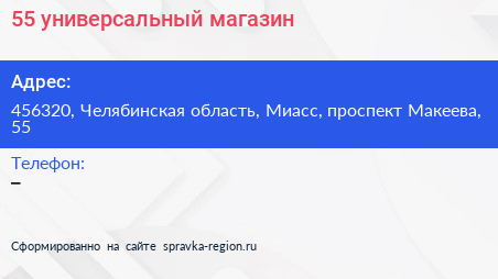 55, универсальный магазин по адресу 456320, Челябинская область, Миасс, проспект Макеева, 55 в дальнейшем Организация, размещена в следующих категориях:
