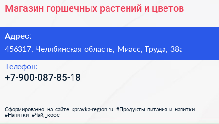 Магазин горшечных растений и цветов по адресу 456317, Челябинская область, Миасс, Труда, 38а в дальнейшем Организация, размещена в следующих категориях: