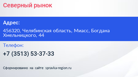 Северный, рынок по адресу 456320, Челябинская область, Миасс, Богдана Хмельницкого, 44 в дальнейшем Организация, размещена в следующих категориях: