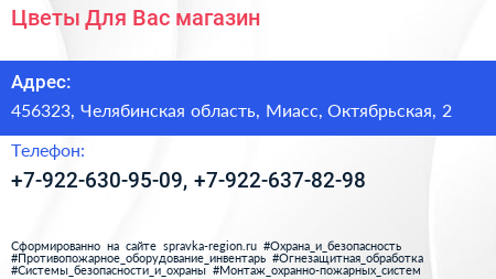 Цветы Для Вас, магазин по адресу 456323, Челябинская область, Миасс, Октябрьская, 2 в дальнейшем Организация, размещена в следующих категориях: