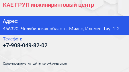 КАЕ-ГРУП, инжиниринговый центр по адресу 456320, Челябинская область, Миасс, Ильмен-Тау, 1-2 в дальнейшем Организация, размещена в следующих категориях:
