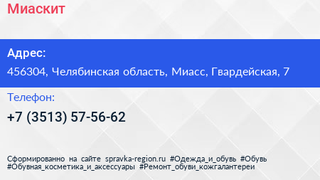 Миаскит по адресу 456304, Челябинская область, Миасс, Гвардейская, 7 в дальнейшем Организация, размещена в следующих категориях: