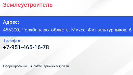 Землеустроитель по адресу 456300, Челябинская область, Миасс, Физкультурников, 6 в дальнейшем Организация, размещена в следующих категориях: