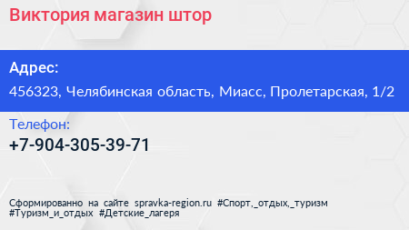 Виктория, магазин штор по адресу 456323, Челябинская область, Миасс, Пролетарская, 1/2 в дальнейшем Организация, размещена в следующих категориях: