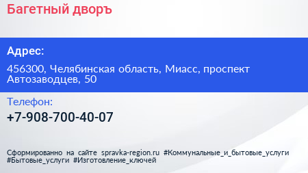 Багетный дворъ по адресу 456300, Челябинская область, Миасс, проспект Автозаводцев, 50 в дальнейшем Организация, размещена в следующих категориях: