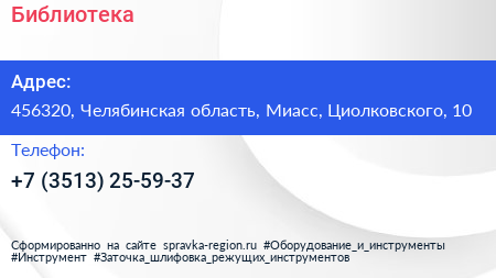 Библиотека по адресу 456320, Челябинская область, Миасс, Циолковского, 10 в дальнейшем Организация, размещена в следующих категориях: