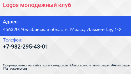 Logos, молодежный клуб по адресу 456320, Челябинская область, Миасс, Ильмен-Тау, 1-2 в дальнейшем Организация, размещена в следующих категориях: