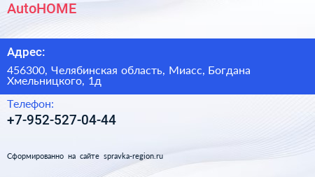 AutoHOME по адресу 456300, Челябинская область, Миасс, Богдана Хмельницкого, 1д в дальнейшем Организация, размещена в следующих категориях: