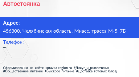 Автостоянка по адресу 456300, Челябинская область, Миасс, трасса М-5, 7Б в дальнейшем Организация, размещена в следующих категориях: