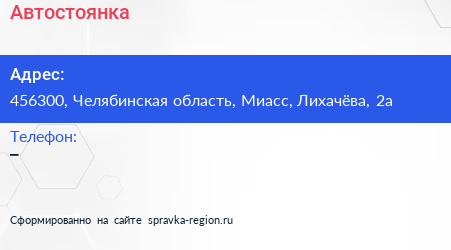 Автостоянка по адресу 456300, Челябинская область, Миасс, Лихачёва, 2а в дальнейшем Организация, размещена в следующих категориях:
