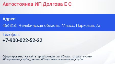 Автостоянка, ИП Долгова Е.С. по адресу 456316, Челябинская область, Миасс, Парковая, 7а в дальнейшем Организация, размещена в следующих категориях: