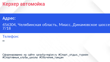 Керхер, автомойка по адресу 456304, Челябинская область, Миасс, Динамовское шоссе, 7/18 в дальнейшем Организация, размещена в следующих категориях: