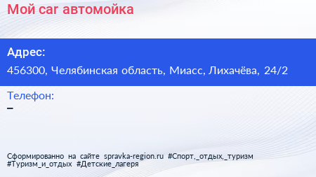 Мой car, автомойка по адресу 456300, Челябинская область, Миасс, Лихачёва, 24/2 в дальнейшем Организация, размещена в следующих категориях: