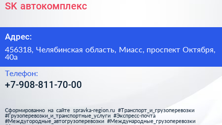 SK, автокомплекс по адресу 456318, Челябинская область, Миасс, проспект Октября, 40а в дальнейшем Организация, размещена в следующих категориях: