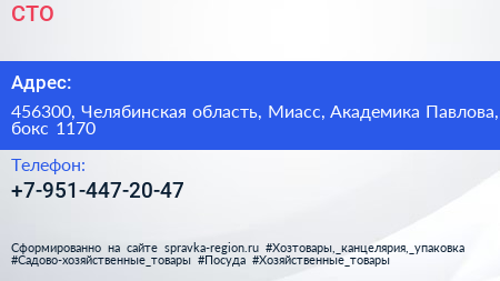 СТО по адресу 456300, Челябинская область, Миасс, Академика Павлова, бокс 1170 в дальнейшем Организация, размещена в следующих категориях: