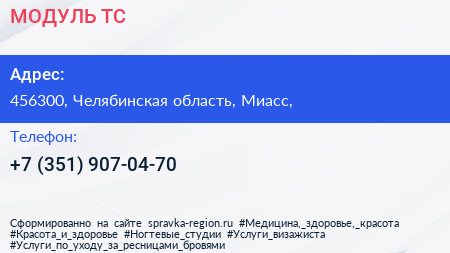 МОДУЛЬ-ТС по адресу 456300, Челябинская область, Миасс, в дальнейшем Организация, размещена в следующих категориях: