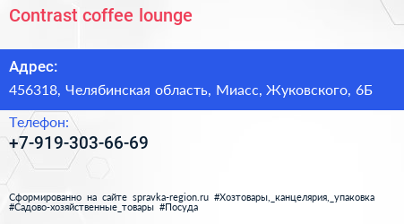 Contrast coffee & lounge по адресу 456318, Челябинская область, Миасс, Жуковского, 6Б в дальнейшем Организация, размещена в следующих категориях: