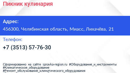 Пикник, кулинария по адресу 456300, Челябинская область, Миасс, Лихачёва, 21 в дальнейшем Организация, размещена в следующих категориях: