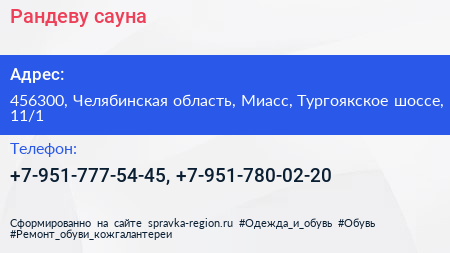 Рандеву, сауна по адресу 456300, Челябинская область, Миасс, Тургоякское шоссе, 11/1 в дальнейшем Организация, размещена в следующих категориях: