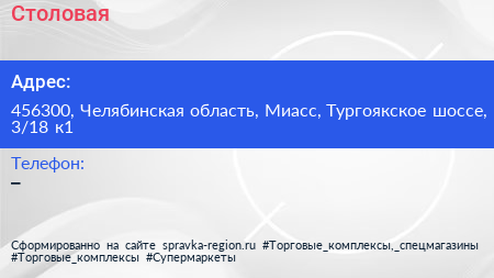 Столовая по адресу 456300, Челябинская область, Миасс, Тургоякское шоссе, 3/18 к1 в дальнейшем Организация, размещена в следующих категориях: