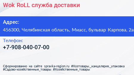 Wok & RoLL, служба доставки по адресу 456300, Челябинская область, Миасс, бульвар Карпова, 2а в дальнейшем Организация, размещена в следующих категориях: