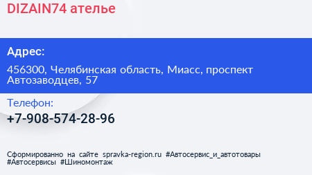 DIZAIN74, ателье по адресу 456300, Челябинская область, Миасс, проспект Автозаводцев, 57 в дальнейшем Организация, размещена в следующих категориях: