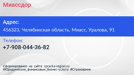 Миассдор по адресу 456323, Челябинская область, Миасс, Уралова, 91 в дальнейшем Организация, размещена в следующих категориях: