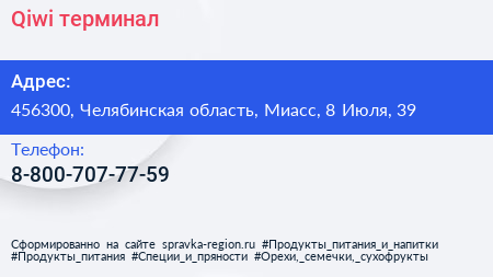 Qiwi, терминал по адресу 456300, Челябинская область, Миасс, 8 Июля, 39 в дальнейшем Организация, размещена в следующих категориях: