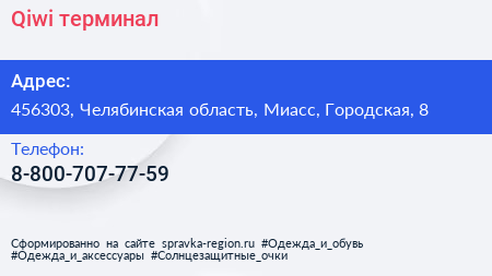Qiwi, терминал по адресу 456303, Челябинская область, Миасс, Городская, 8 в дальнейшем Организация, размещена в следующих категориях: