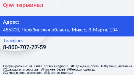 Qiwi, терминал по адресу 456300, Челябинская область, Миасс, 8 Марта, 134 в дальнейшем Организация, размещена в следующих категориях: