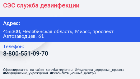 СЭС, служба дезинфекции по адресу 456300, Челябинская область, Миасс, проспект Автозаводцев, 61 в дальнейшем Организация, размещена в следующих категориях:
