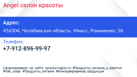 Angel, салон красоты по адресу 456304, Челябинская область, Миасс, Романенко, 18 в дальнейшем Организация, размещена в следующих категориях: