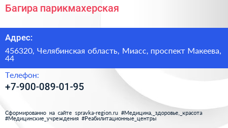 Багира, парикмахерская по адресу 456320, Челябинская область, Миасс, проспект Макеева, 44 в дальнейшем Организация, размещена в следующих категориях: