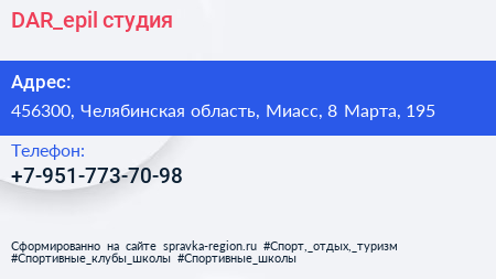 DAR_epil, студия по адресу 456300, Челябинская область, Миасс, 8 Марта, 195 в дальнейшем Организация, размещена в следующих категориях: