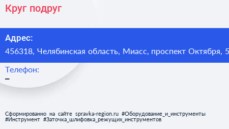 Круг подруг по адресу 456318, Челябинская область, Миасс, проспект Октября, 5 в дальнейшем Организация, размещена в следующих категориях: