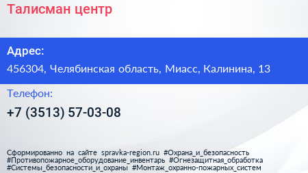 Талисман, центр по адресу 456304, Челябинская область, Миасс, Калинина, 13 в дальнейшем Организация, размещена в следующих категориях: