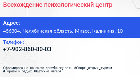 Восхождение, психологический центр по адресу 456304, Челябинская область, Миасс, Калинина, 10 в дальнейшем Организация, размещена в следующих категориях: