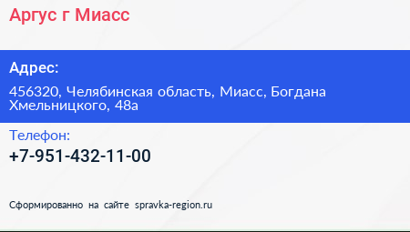 Аргус, г. Миасс по адресу 456320, Челябинская область, Миасс, Богдана Хмельницкого, 48а в дальнейшем Организация, размещена в следующих категориях: