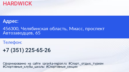 HARDWICK по адресу 456300, Челябинская область, Миасс, проспект Автозаводцев, 65 в дальнейшем Организация, размещена в следующих категориях: