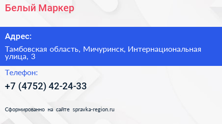 Белый Маркер по адресу Тамбовская область, Мичуринск, Интернациональная улица, 3 в дальнейшем Организация, размещена в следующих категориях: