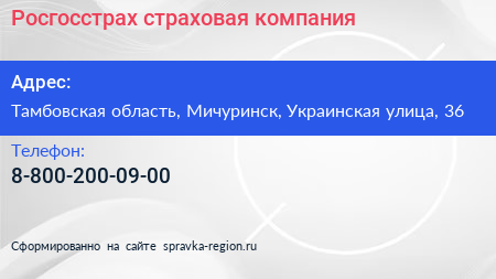 Росгосстрах, страховая компания по адресу Тамбовская область, Мичуринск, Украинская улица, 36 в дальнейшем Организация, размещена в следующих категориях: