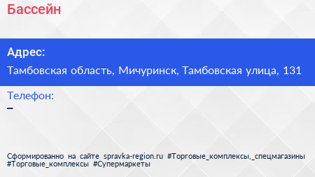 Бассейн по адресу Тамбовская область, Мичуринск, Тамбовская улица, 131 в дальнейшем Организация, размещена в следующих категориях: