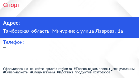 Спорт по адресу Тамбовская область, Мичуринск, улица Лаврова, 1а в дальнейшем Организация, размещена в следующих категориях: