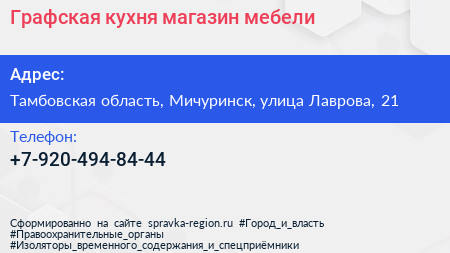 Графская кухня, магазин мебели по адресу Тамбовская область, Мичуринск, улица Лаврова, 21 в дальнейшем Организация, размещена в следующих категориях: