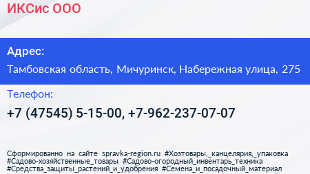 ИКСис, ООО по адресу Тамбовская область, Мичуринск, Набережная улица, 275 в дальнейшем Организация, размещена в следующих категориях: