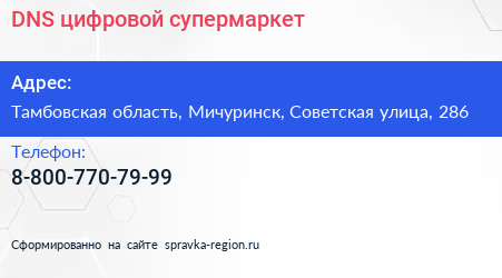 DNS, цифровой супермаркет по адресу Тамбовская область, Мичуринск, Советская улица, 286 в дальнейшем Организация, размещена в следующих категориях: