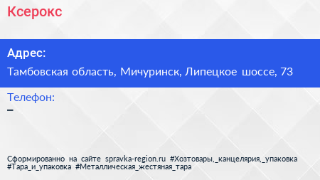 Ксерокс по адресу Тамбовская область, Мичуринск, Липецкое шоссе, 73 в дальнейшем Организация, размещена в следующих категориях: