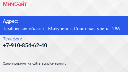 МичСайт по адресу Тамбовская область, Мичуринск, Советская улица, 286 в дальнейшем Организация, размещена в следующих категориях: