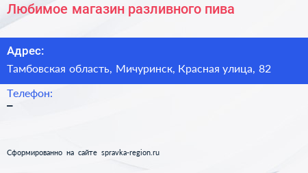 Любимое, магазин разливного пива по адресу Тамбовская область, Мичуринск, Красная улица, 82 в дальнейшем Организация, размещена в следующих категориях: